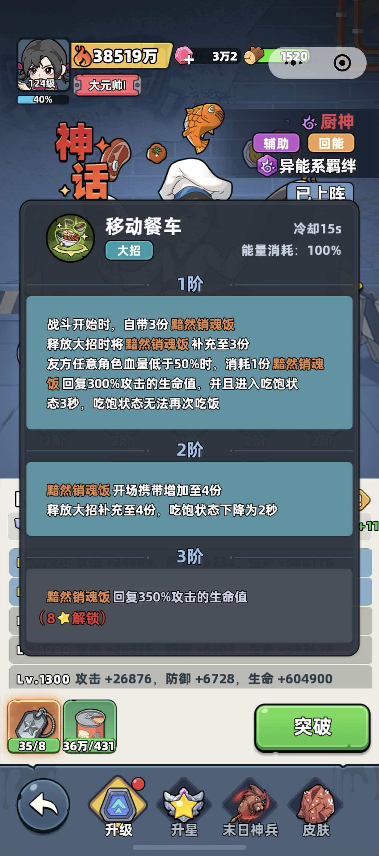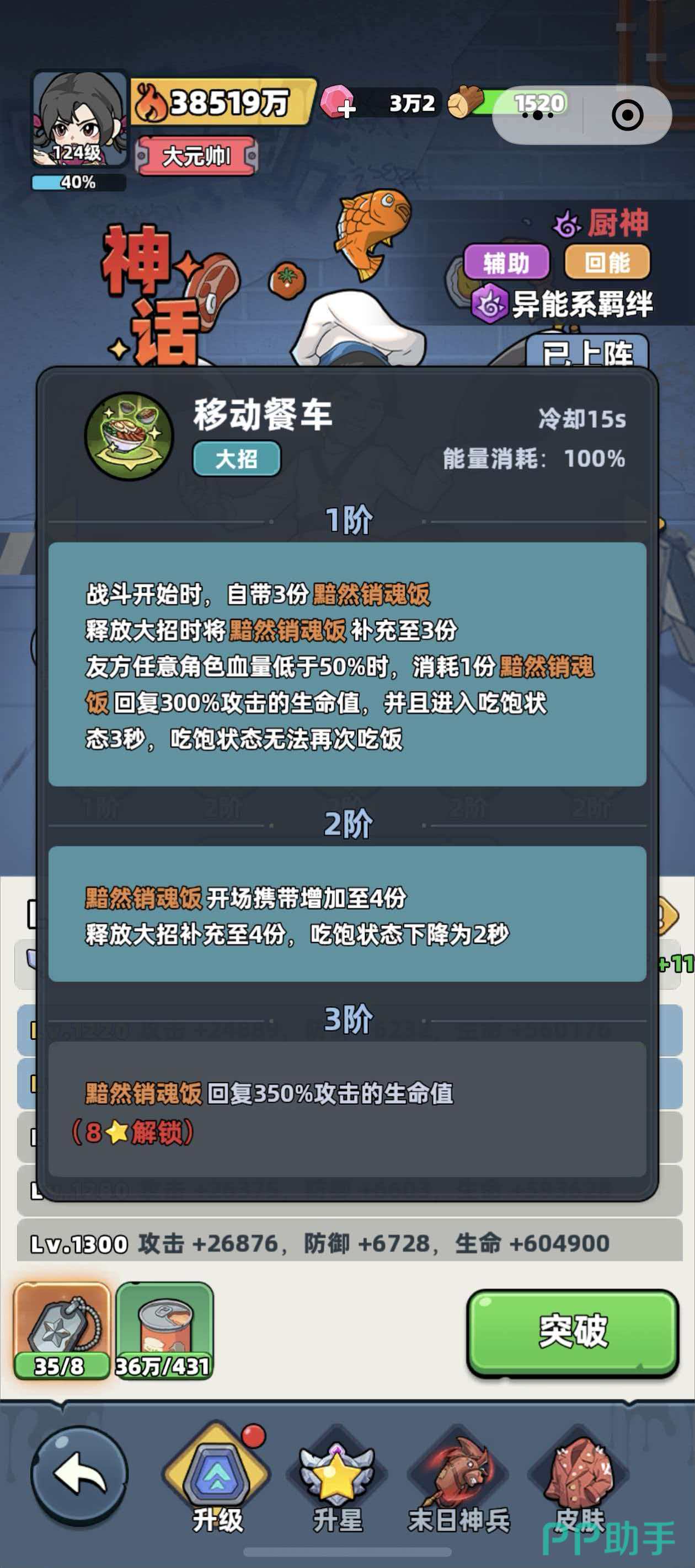 厨神和医疗老兵在游戏中都是出场率比较高的两个辅助型角色,这两个角色在定位上别看同时辅助,可是角色的具体效果和羁绊关系都各不相同,先来说一下厨神,厨神属于回能类的角色,他的羁绊为异能系羁绊,厨神的主动技能可以给血量百分比最低的4个队友投喂食物,每获得1层真好吃的状态时,都可以给队友恢复20%攻击力的生命值,大招移动餐车则会让厨神在战斗开始时就携带3份黯然销魂饭,黯然销魂饭可以恢复300%攻击的生命值,且让队友进入到吃饱的状态。