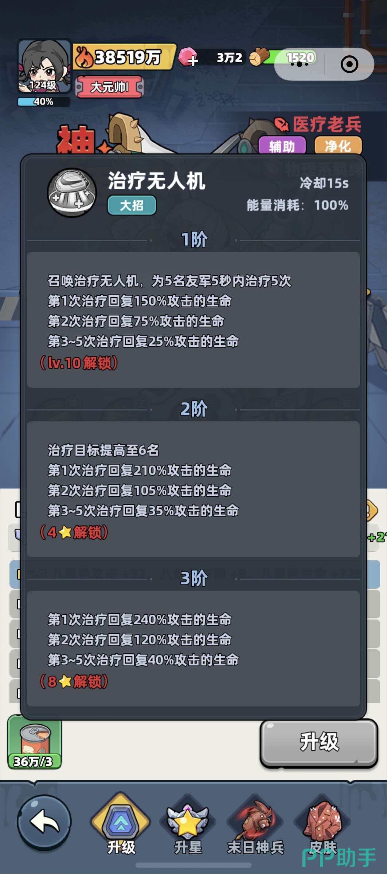 再来看看两个幸存者的被动技能,厨神的被动技能有一个巨大的优势,就是战斗开始时厨神会携带一份能量音量,当我方绝对能量大于50%的时候,消耗1份能量饮料可以直接为其恢复40%的能量,医疗老兵的被动技能要更加注重净化,在治疗的过程中给队友附加上额外的攻击力加成,从两个幸存者的技能中可以发现两个幸存者技能上各有不同的侧重点,厨神在推图时的效率要更好一点,医疗老兵则更适合在高难度的战斗中使用。