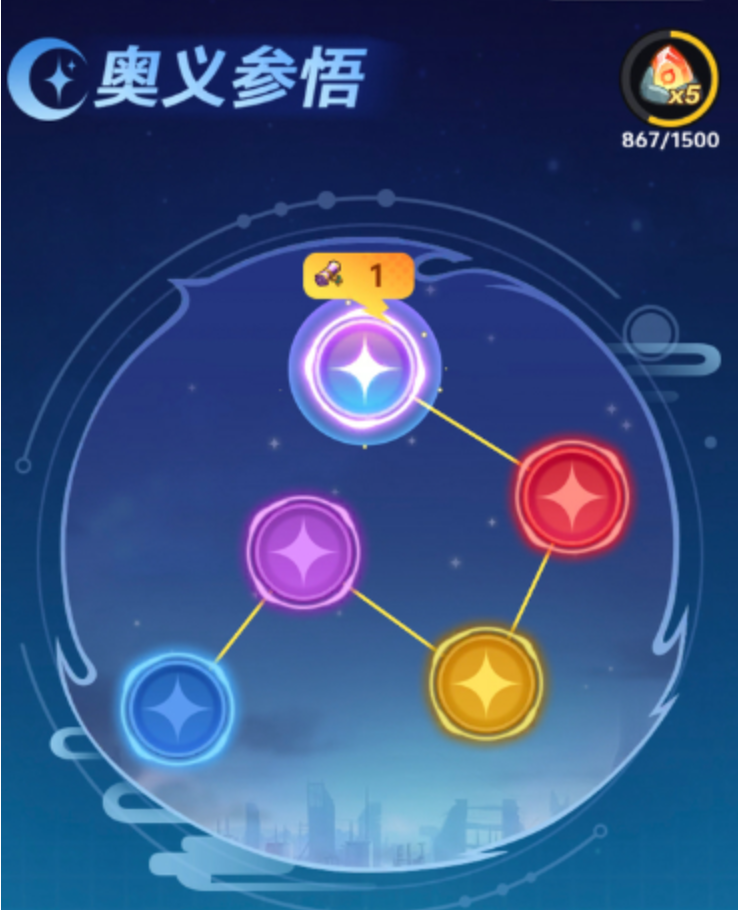 奥义参悟入口在游戏主界面的酒馆里,是所有奥义操作的入口。不论是学习新的指令招式,还是给已有的奥义升级,玩家都可以自由地搭配各种词条,从而达到一站式解决的目的。随着奥义等级不断提高,角色就会获得一系列高阶被动技能,并且抗打断的能力也会随之提高。高强度的对战中复合型的效果更为明显,可以轻易地获得战斗上的优势。新手刚开始接触奥义的时候不需要急躁,应该先将基础的禅舞和搭配练熟,跟着日常任务积累资源,不能随意浪费。