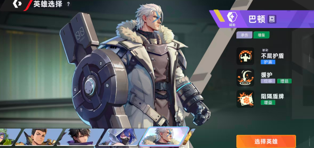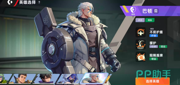 除了远程和近战的输出型角色,这款游戏当中的功能型角色同样是游戏中相当重要的存在,角色巴顿就有着瞬间改变战局的能力。手持巨盾的巴顿能在游戏当中为友军提供相当高额度的护盾,在团队和对手的对拼当中能带来极大的收益。作为核心的技能也是很有含金量,他的技能是能生成一面能吸收所有伤害的盾牌,在遭遇远程型对手的攻击时,这个技能就能瞬间拦下对手的所有攻击,令对手束手无策。因此选择巴顿作为新手刚刚入坑的功能型角色选择可以说是最适合不过了。