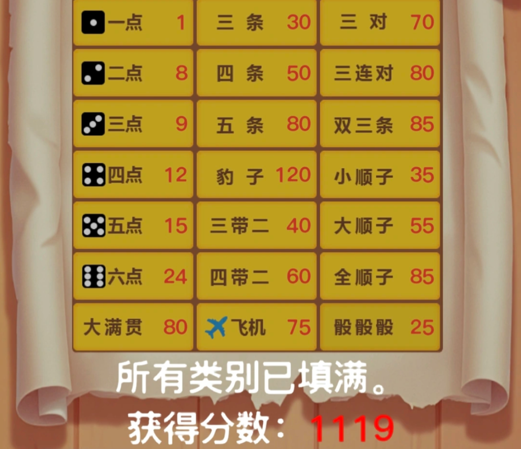 尤其是在平时日常游玩时,玩家们能够随时通过投掷骰子,对于各种组合不断的选择,在不同的组合达成之后,玩家们会获得相对应成就,游戏的成就相当之多,高达32个,喜欢全收集的玩家们千万不要错过。而每一次随机的骰子,都将给玩家们带来惊喜,游戏的玩法也非常简单,只需要投骰子,打出相应点数,并组合出相应组合,就能够获取高分,拿下胜利,方法非常简单,当然玩家们在初次接触的时候可能都会比较懵,不过多多上手之后就能够迅速的开启自己的策略之路了。