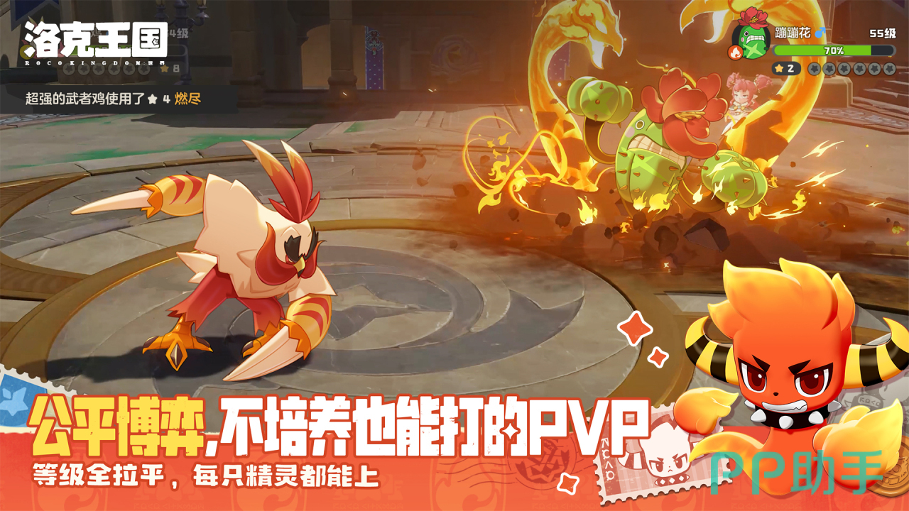 火系(火花)主打高效开荒与稳定输出。其核心优势在于精准克制新手地图中高频出现的虫系、冰系及草系野生精灵,大幅提升清怪效率。若搭配特性“助燃”,可使火系技能附带20%物理攻击加成(首领化后提升至30%),配合火焰踢、烈焰冲锋、火焰旋涡与热力爆弹四连技能组,常能实现群体秒杀。此外,火系进化后具备突破鸿沟等特殊地形障碍的能力,显著优化大地图探索动线。