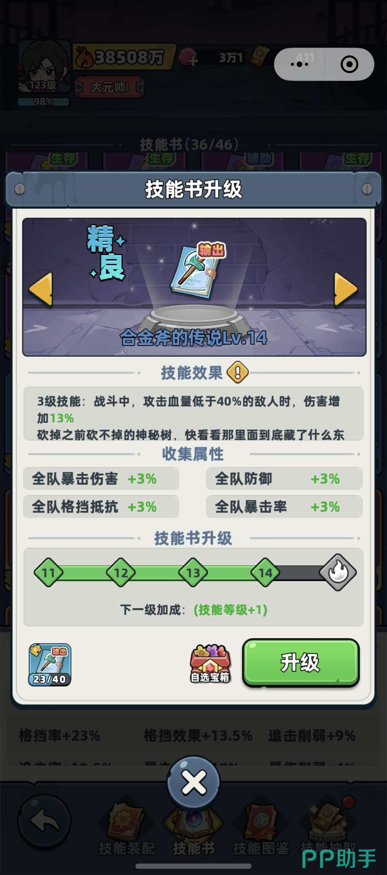 “合金斧的传说”为唯一可清除障碍树的技能书,装备后不仅解锁全部地形通行权,还能显著提升普通砍伐效率。未装备该技能时,虽仍可砍伐普通树木,但单棵树耗时较长;尤其当后期需集中采集300–400根木材以解锁新地图区域时,低效砍伐将导致资源严重短缺,拖慢整体发育节奏。