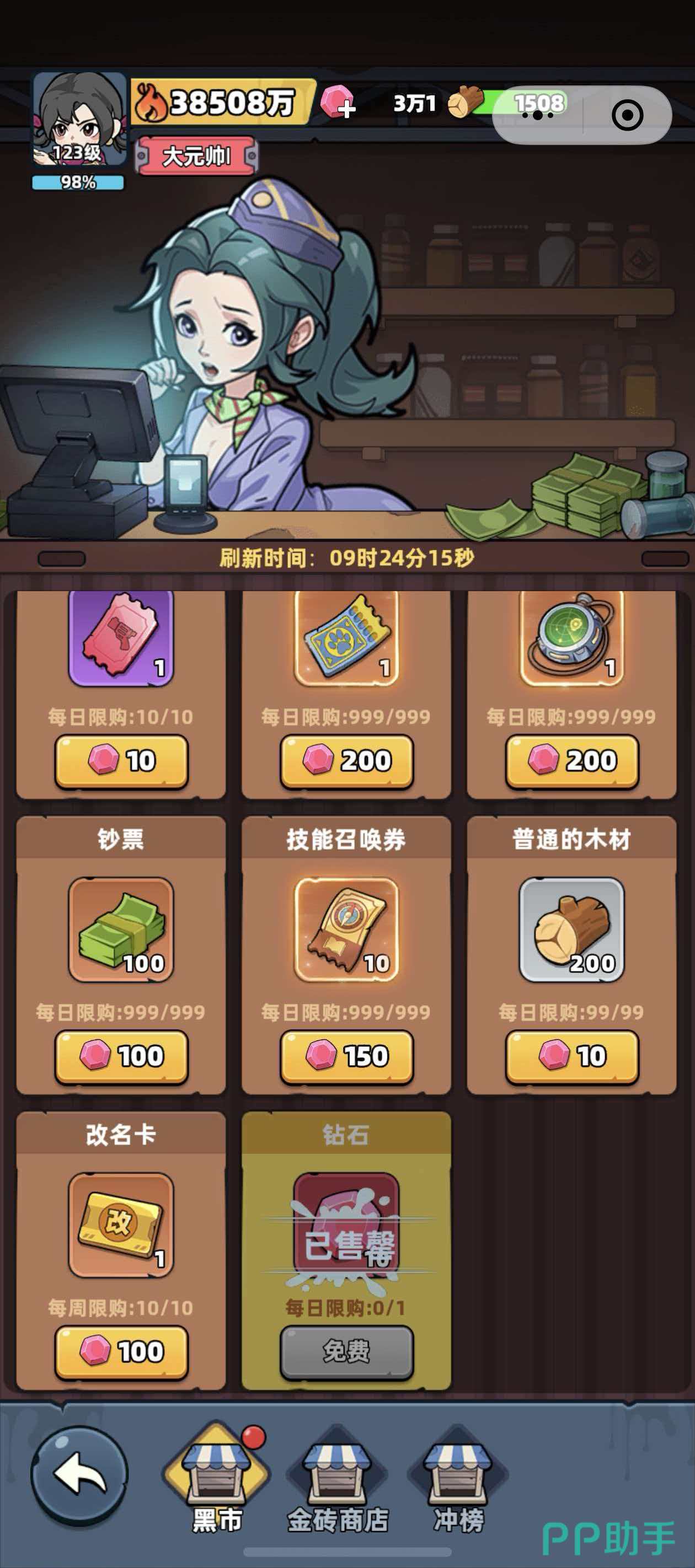 除自主采集外,黑市提供稳定替代方案。操作路径为:点击屏幕右侧【更多】→进入【黑市】→向下滑动至【普通木材】商品栏。单价为10格粉钻兑换200根木材,每日限购99份。该渠道特别适用于木材紧急短缺、或希望将时间优先投入战斗与副本推进的玩家,性价比高于重复劳动式采集。