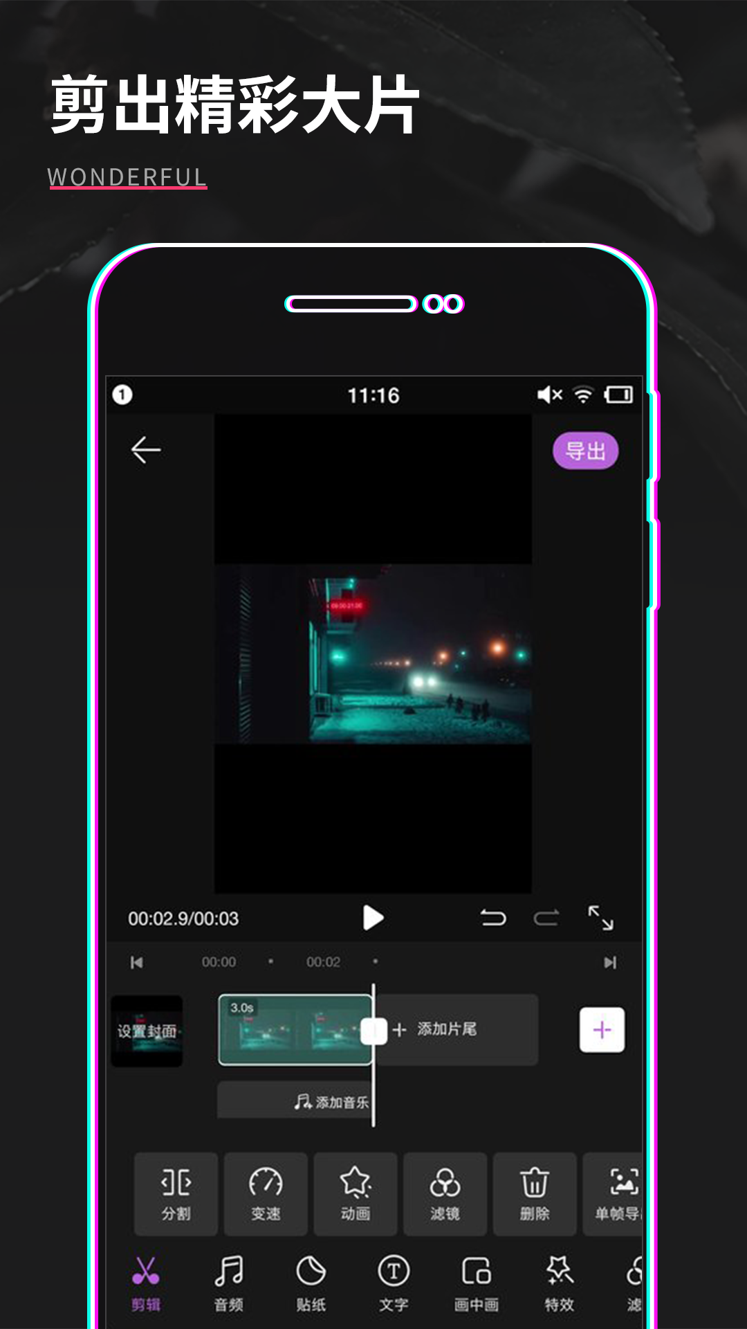 专为短视频平台优化设计,内置丰富滤镜库与动态文字模板,支持自定义字体样式、颜色及出场动效;字幕添加流程简化,可同步匹配语音节奏;曲库涵盖流行、轻音乐、氛围音效等多类授权音频,导出成品无强制水印,保障内容纯净度与传播效果。