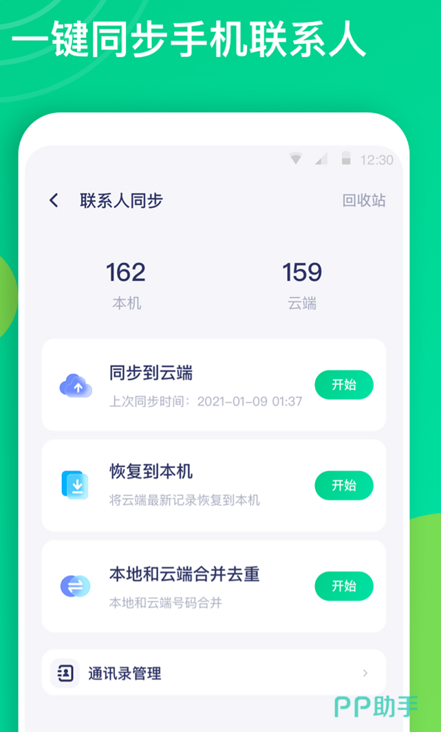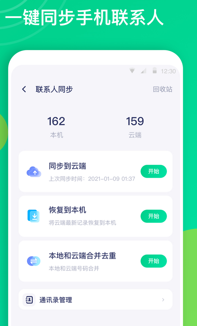 换手机的时候,通讯录丢了几个联系人,事后才发现,找回来很麻烦。备份和恢复操作都在一个界面里,通话记录、短信、照片也一并覆盖,不用分开处理。重复联系人会自动识别合并,失效号码也能一键清理,通讯录乱了很久的情况下用一次,整洁不少。误删了联系人不用慌,回收站保留三十天内的删除记录,找回来基本没问题。