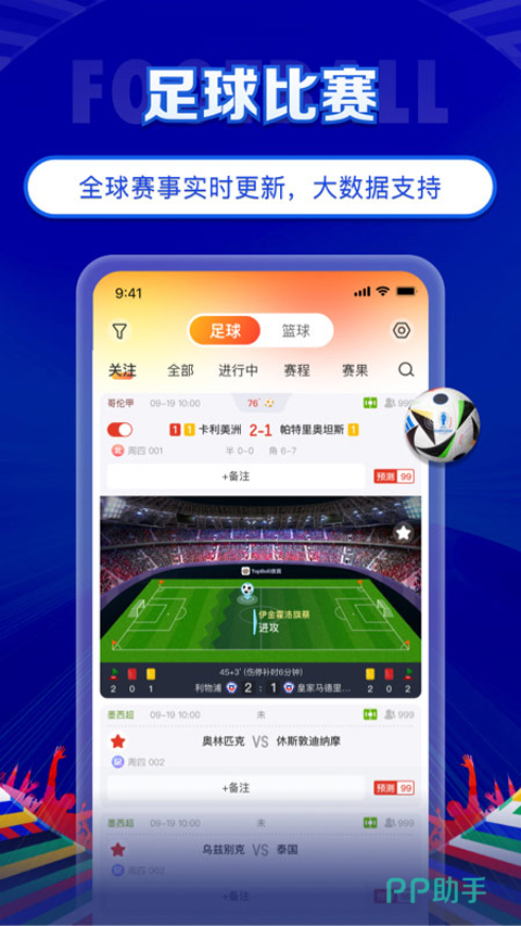 这是一款免费为用户提供实时比分、全球赛事覆盖、资讯社区、核心数据、数据模型等多元化服务的看球软件。在这里,用户即使不打开软件也能掌握场上的重要信息;同时,用户可以关注自己喜欢的球队球员,软件会根据用户的喜好来进行个性化的内容推荐。另外,这里的数据非常多,包含赛果回查、历史数据、球队数据、赛事积分、赛事安排等供用户参考。