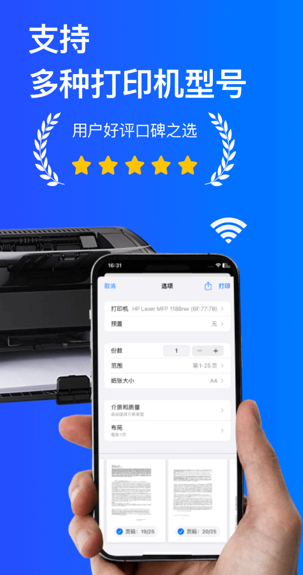 支持超过一万款打印机型号,惠普、佳能、爱普生、兄弟这些品牌基本都能识别,喷墨、激光、针式设备也都在兼容范围内。云端处理加本地驱动库的方式自动完成适配,不需要手动安装驱动,手机连上Wi-Fi就能配对打印机。文件格式支持Word、Excel、PPT、PDF等常见类型,照片打印有1寸到6寸的尺寸模板可以选。