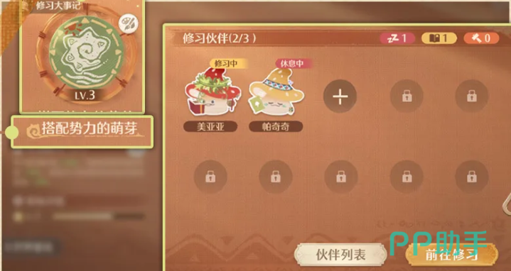 同步上线的“修行之路”系统,围绕神女大人指导下的搭配技艺精进展开。玩家需建设并升级专属修行营地,营地等级提升将直接增强建筑负载上限、搭配事件掉落概率及奖励品质。新加入的修行伙伴可在地图中主动寻访并完成招募,点击伙伴头像即可查阅其专长领域与技能倾向。