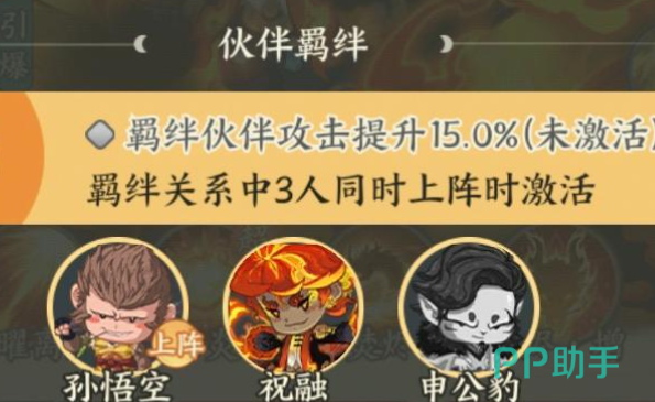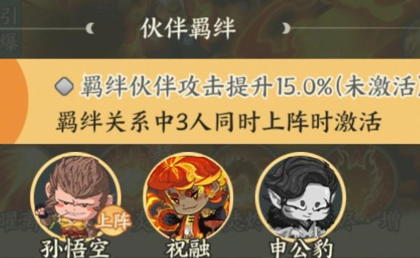 这个阵容里面可以根据混沌队的成员带来25%的伤害加成,其中的成员大家可以考虑孙悟空、申公豹,这三个角色放在一起的话,他们能够造成的一个羁绊效果也是比较容易触发的,触发了混沌战的羁绊效果之后,这三个角色他们同时上阵的时候,会有15%的攻击加成效果,如果不是跟他们一起上阵的话,大家想要攻速提升,也可以跟金乌或者是金蝉子这类角色进行搭配,包括跟李白还有金灵圣母,他同样是可以一起上阵的,所以祝融目前能够触发的羁绊很多的情况下,他组队的条件也会比较多,目前他可以玩的阵容相对其他的角色来说流派会更多一些,这些羁绊让阵容在不同的搭配当中拥有的能力会走向各方面,建议如果是不想氪金的话,大家这里选择共工、钟馗、孙悟空都是非常适合的,因为共工可以用来承伤,而钟馗增加一些负面效果之后,这里的祝融他的输出就可以完全爆发出来,最后还可以搭配一个嫦娥让他保证整体阵容的生存质量,然后祝融跟吕洞宾也可以搭配在一起,他们俩负责主要输出完全没有问题。