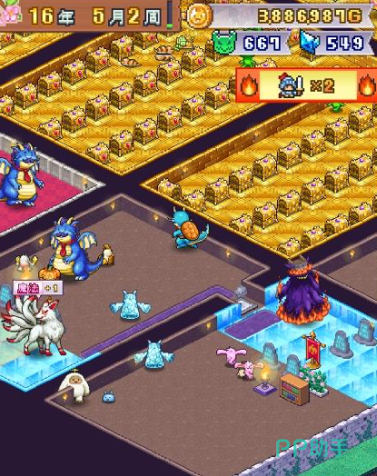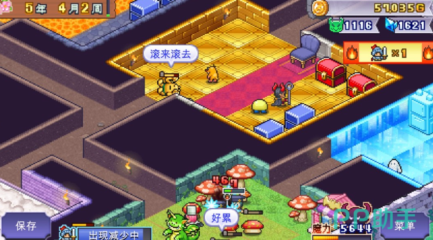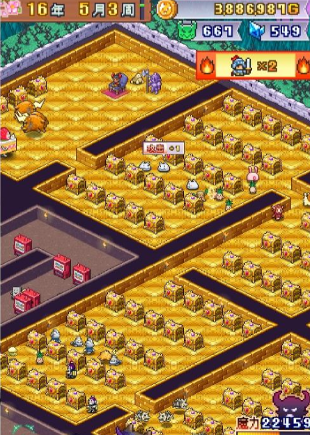 而另外被褥这个之类的设施最好也是要放一些,因为它对于大家获取经济来说会更有好处一些,也可以给勇者带来血量恢复的效果,而且这里一次性恢复的血量数值还不低,如果大家是有少量攻击伤害的话,那么这里也有可能可以一次性将自己的血量全部回满,然后存档点的话,其实也可以保证大家在经济获取上面有更顺利的用法,因为后期可以保证大家可以用来复活,那么怪物进来的门口处大家可以保证隔出来5个小房间,这里的话放随便什么时期想培养的怪物都是可以的,而另外3×3的小房间当中,大家就要注意这里要设定出来一个道路,在道路旁边的陷阱当中要放置3只同样类型的怪物,这样的话才可以绑住这个怪物军团,后期的话在一个房间里面,大家也可以放3只歪罗军。