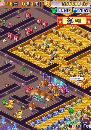 这样的话用来刷级还是比较快的,两侧的话,可以放一些怪物的增益效果,包括一些道具设施也是可以放在这里的,比如面包店这里面的话,会掉落的一些道具,大家就可以在这里用,房间的链接处大家可以放一些陷阱,这里比较推荐的是用一些脸盆或者是雷云之类的掉落陷阱,用起来效果可能会比较好,而最中间的布局,大家只要把魔王藏宝物放在这里,因为这里的话可以摆满所有的宝箱,这样进来的所有的勇者都会往中心房间走,给到大家送来的经验也是最多的,而且大家要注意,最外边两圈上面有一个左上角的路线,大家放陷阱的时候,一定要针对性的放粘鸟胶,要不然的话,有一些特殊的怪物在这里可能会没有加成。
