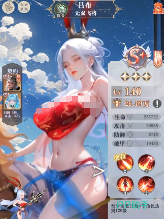 在十大最强英雄中,比较受到关注的就是吕布,这也是一个值得培养的核心输出。玩家在游戏第3天就可以拿下吕布,并且可以迅速的将其提升到三星。这一个阶段的吕布整体的战斗力表现是很不错的,那重点就在于要把大招提升到二级,可以解锁魔神形态。在开启之后,那自然就是刀刀暴击,爆发的伤害是很出色的,可以迅速的完成收割。