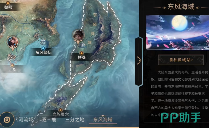 本期为大家详细介绍《王者荣耀世界》中东风海域的地理位置与探索要点。作为游戏世界观的重要组成部分,东风海域位于整张世界地图的右侧区域,以广阔海洋地貌为显著特征,融合了浓厚的东方文化元素与叙事风格。该区域是宫本武藏等标志性角色的主要活动舞台,但需注意:东风海域并非初始开放区域,玩家需随主线剧情逐步推进,方能解锁并进入探索。