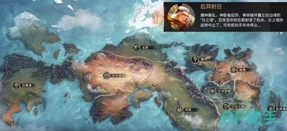 除东风海域外,世界地图还划分为多个特色地理单元。向北延伸可抵达建木区——神魔力量交汇的核心地带,盘古、后羿等神话体系英雄在此活跃,后续主线将深入展开相关史诗级剧情内容。