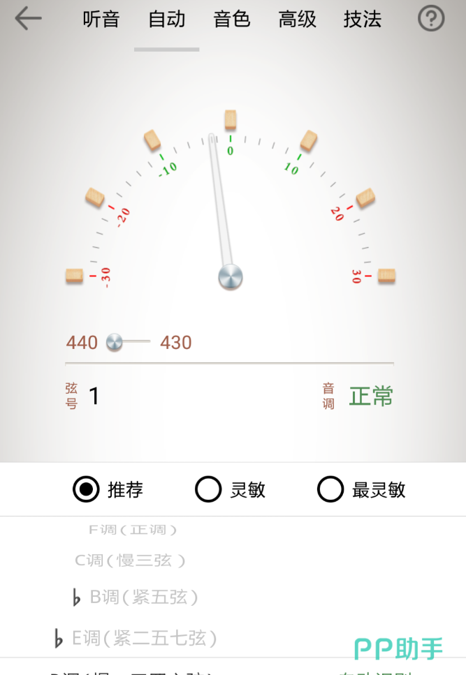 古琴的调音需求和其他弦乐不太一样,通用工具往往识别偏慢,这款基于古琴真实音色采样做了针对性优化,定弦识别速度和准确率都有明显提升。调音模式多达七种,初学模式有分步提示引导,专业模式提供精准数字指针,十二平均律模式满足高精度需求,不同水平的用户都能找到适合自己的设置。