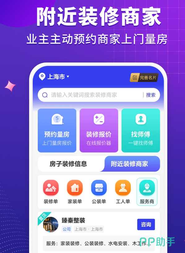 业主发个需求,附近的装修团队报价很快就来,口碑排行一目了然,不用靠熟人介绍碰运气。工长和装修公司那边,客户管理、预算报价、进度跟踪都在一个地方搞定,多端同步不怕漏事。3D方案可以快速生成,VR全景给客户看,签单效率高了不少。工地巡检用照片加定位打卡,施工过程有记录,业主不用天天跑现场盯着。