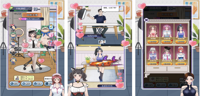 本作是款可以随意培养女主播和女团的免费小游戏,经营养成的游戏玩法让整体的互动性更高,可以实现换装化妆还可以跟女主角互动,养眼的女团角色看上去就很精致耐看,更多的养成任务和互动玩法设定新鲜感十足,大量休闲模式的加持也增添了游戏的可玩性,梦幻女团这款养成女团的神作你也试试吧。