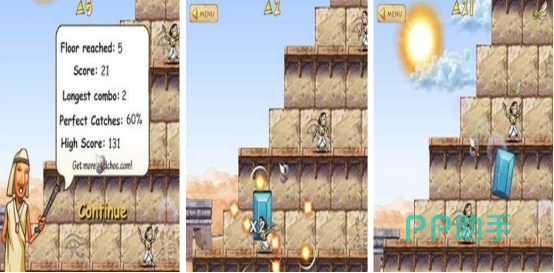 这款游戏需要玩家把握好时机,把石块从金字塔的底部运输到顶部,当地面上背石块的小人移动到相应的位置的时候,点击屏幕抛出石块就可以了。游戏提供了多种模式,比如快速游戏或帝国模式,前一种模式适合追求层数极限的玩家,后一种模式则更适合想要打造埃及城市的玩家,游戏的元素多种多样,有沙尘暴和地震等自然灾害,玩家面临的挑战也更多、更刺激。