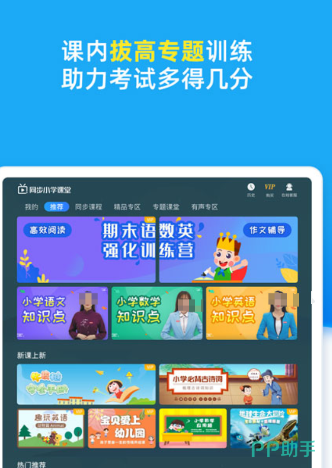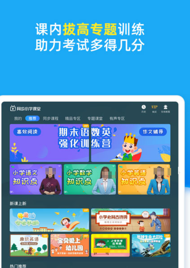 全国3000多位一线教师的课程资源汇聚在一起,覆盖50余种主流教材版本,人教版、北师大版都在里面,换了教材也不用担心对不上。语文板块用"阅读—仿写—修改—点评"四个步骤来训练,不是单纯背课文,而是真的在练写作思路。用动画来讲数学里的抽象概念,比如用分蛋糕来演示分数,孩子看一遍基本就明白了。