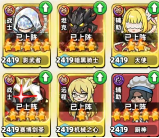 阵容的搭配就是打赢的核心,攻防兼备就是硬道理。个人认为暗黑骑士,吕布,天使,机械之心,还有赛博剑圣,这一套阵容是比较好用的。暗黑骑士的被动技能就可以给全队增加双抗,前排抵抗伤害是比较不错的。赛博剑圣就能打出伤害,而且也可以给神鸟挂神圣伤害debuff。比较关键的就是天使,复活技能就可以给整个队伍带来多一次机会,提升容错的几率,就算操作失误也无需担心。