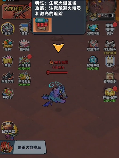 在玩这款游戏时,火焰神鸟就是不少玩家卡关的地方。作为爬塔中期第1个硬核BOSS,战斗力会达到987.18万。那么到底怎么样才能打败呢?生存33天火焰神鸟如何通关?赶紧来看一下接下来的介绍,虽然说难度比较高,但是找对方法搭配好阵容之后,照样也可以轻松的通关。并没有大家想象的这么复杂,赶紧跟着一起来看一下。