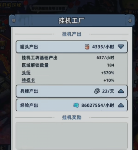 每一次升级都会增加10%~20%的容量,提升到5级,容量就会直接翻两倍。挂机的时间也可以大幅度的提升,不需要频繁的上线去收资源。升级主要是花,木材,还有钢铁这些建材,建议优先把医疗包,弹药这些保命物资全部准备好。剩下的资源全部都砸在工厂升级上,这就是稳赚不赔的长期投资。想让挂机收益更上一个台阶,那么周卡就是一个性价比之王,在买了之后每小时都会有直接翻倍的产出。离线几小时的收益要比手动刷一天还多,长期玩是很划算的。