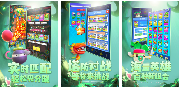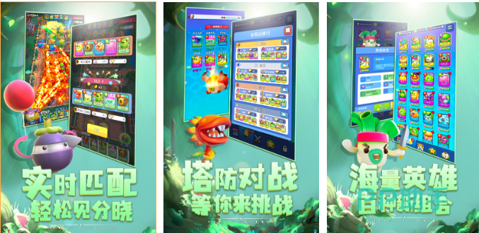 本作是拥有植物元素的多人联机塔防对战类游戏,多样的挑战任务和互动模式任由大家挑战,轻松的操作理念和明亮视觉效果都是玩家的最爱,更多的植物英雄可以轻松解锁组合更多的超能力,塔防战斗过程中触发的炸裂特效更是精致,更多的辅助道具组合成的流派也形形色色。