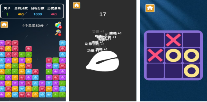 这是款拥有大量休闲游戏合集的APP,三消模式、消除星星和井字棋这样的玩法都有,还设定了简化操作以及舒适的视听体验,更多的游戏玩法融合其中让很多休闲游戏爱好者着迷,游戏辅助道具多种多样带来的解压休闲气氛也更为硬核,每一关所带来的解压感受也都显得别具特色。