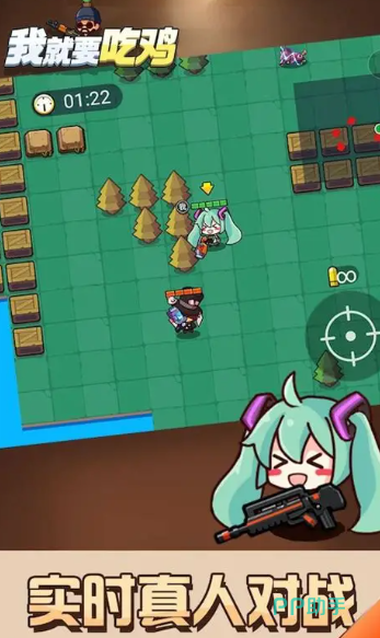 这里面覆盖所有的端口,可以马上联机匹配对手,不管在哪都能找到小伙伴一起玩。游戏画面干干净净,是可爱的卡通风格,看着特别舒服,可以团队对战,也可以单人求中两种竞技模式,可以约上小伙伴一起组队,当然也可以单挑全场搜集好武器装备之后合理规划进行的路线,躲避危险,果断击败对手就能赢得胜利。