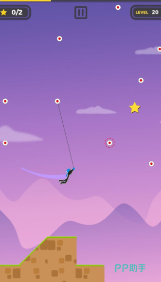 绳索跳跃闯高空,角度力度要掌控,炫彩皮肤添灵动,闯关成功有殊荣,玩家操控火柴人,抛出绳索吸附在砖块上,滑行跳跃到安全位置,躲避障碍物,最终到达终点,采用创新的物理摆荡系统,还原真实的抛物线运动轨迹,它的操作很简单,点击屏幕就能抛出绳索,却很考验角度和力度的掌控,越玩越有挑战性,炫彩装扮添新风,挑战自我无极限,成功闯关乐无穷。