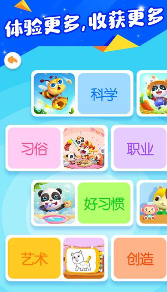 《宝宝巴士奇妙屋》以场景模拟闯关为主,孩子可以跟着可爱的卡通角色,完成职业体验,认知探索等各种趣味任务,不会觉得枯燥,游戏里有数字认知,汉字学习,生活习惯养成三类闯关关卡,操作只有点击和拖拽两种,简单易懂,孩子一看就会,不用家长在旁边一遍遍教,画面颜色柔和不刺眼,能好好保护孩子视力,每一关还有清楚的语音提示,宝宝自己就能玩。