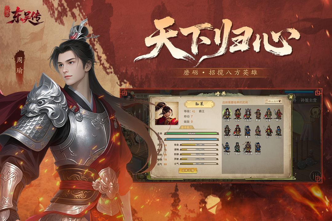 《三国志东吴传》将历史上东吴所经历的大大小小的战役,均进行了齐全完备的加入。在侧重历史的同时,游戏重新的虚构出来更让人难以置信的剧情事件,从武将再到红颜,都进行了特殊的能力特殊的战场价值塑造,游戏还让我们通过一种周目挑战的形式,不断的闯关来获取武将。