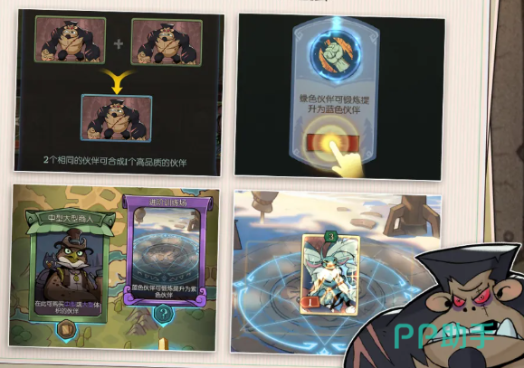 伙伴成长路径包含奖励获取、碎片合成及训练场强化三大模块,随旅程推进逐步解锁更高阶能力。途中还将遭遇商人交易、圣光护佑、鸡尾酒特供等多样化随机事件,带来临时属性加成或机制变更。赢得奖杯是胜利的直接标志;若挑战失败,则扣除一定信心值。失利玩家可更换角色——包括花匠、铁皮人、龙女主角——重新开启征程,延续寻宝之旅。