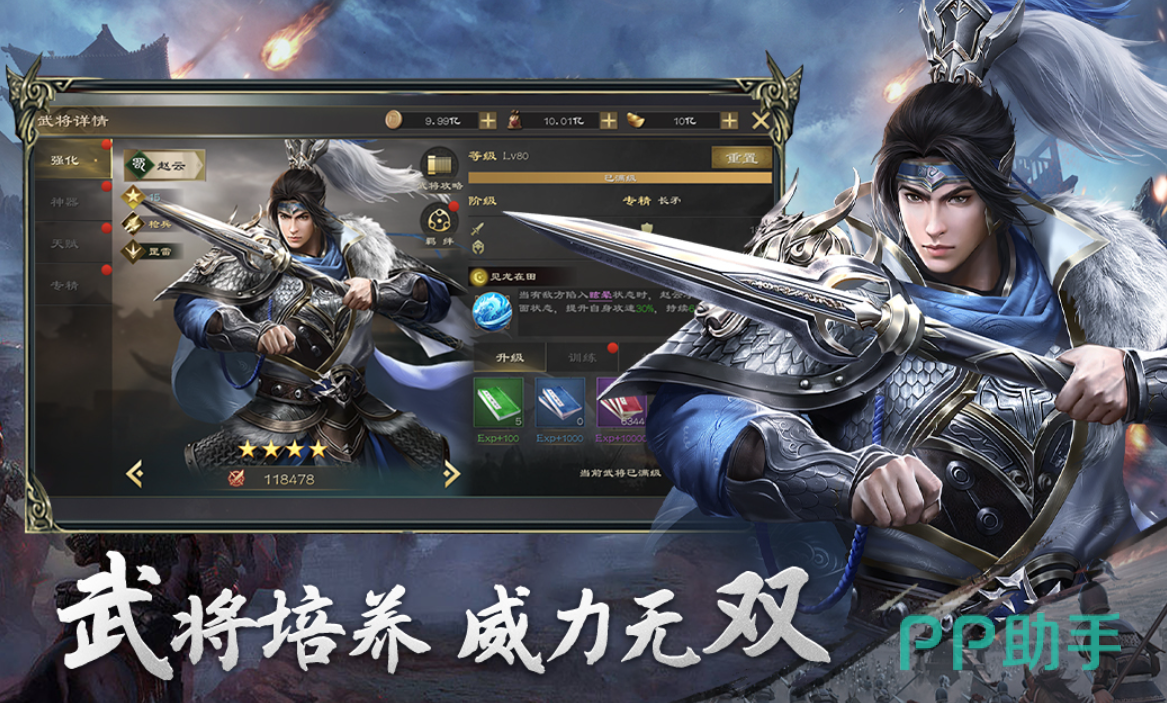 本作是拥有全新版本的动作割草战斗游戏,无双战斗的特殊玩法加上RPG的设定可玩性真心不错,更多神兽加持帮助玩家轻松获得战役的胜利,三国武将造型帅气而战斗的特效也相当华丽,新武将不断更新带来的新鲜战斗体验更爽,培养机制也很完善所提供的整体游戏内容还超级耐玩。