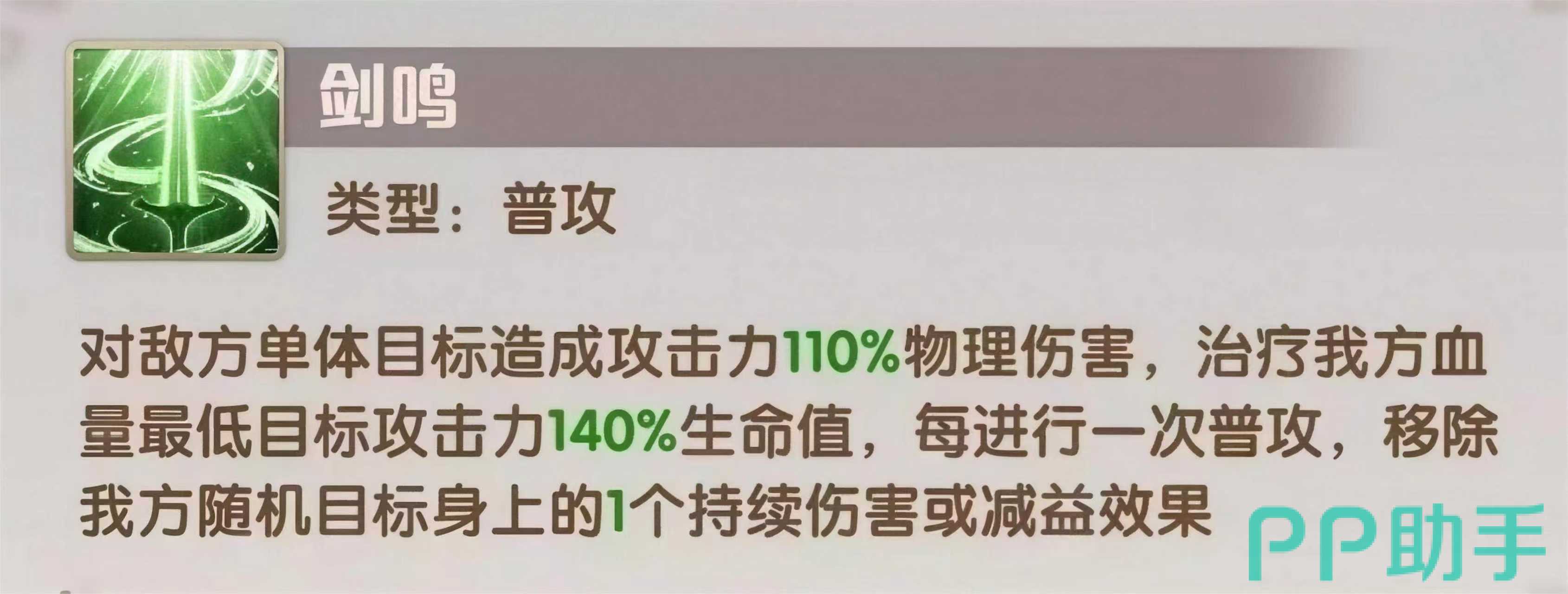 技能设计体现刘备“仁政辅世”的定位:普攻【剑鸣】在对敌造成基础伤害的同时,自动为目标血量最低的友方单位施加治疗,并清除其身上一个持续伤害类或减益类状态;怒气技【仁德之主】消耗满怒气释放,可同时恢复三名友军生命值,并赋予其追击效果与连击增伤效果,显著强化队伍输出节奏与生存韧性。