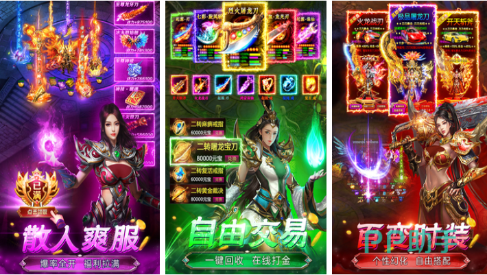 本作是散人非常喜欢玩的多服务器传奇手游,具有极高的自由度也有着特殊的交易体系,时装更是多种多样带来的观赏性绝佳,砍杀效果刀刀暴击不会让传奇粉丝失望,更多的战斗任务、跨服PK模式增加了耐玩性,可以实现一键回收各种资源获取更多物资,你也试着在多个服务器中穿梭战斗吧。