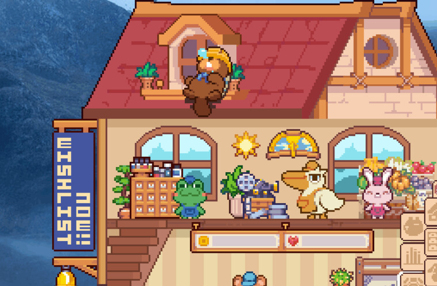 其实这是款动物题材佛系风格的模拟经营游戏,玩家要扮演卡皮巴拉开发自己的专属旅店,然后招募一些动物房客进入自己的门店进行经营互动,幸福又有趣的游戏内容让卡皮巴拉爱好者沉浸其中,像素风的基础背景以及可爱动物都是游戏特色,你也进入这款经营互动游戏中享受幸福时光吧。