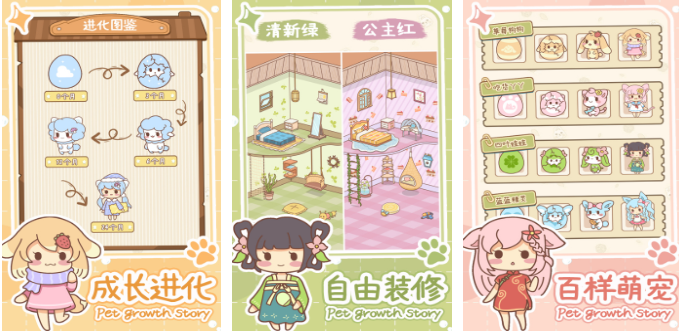 爱玩萌宠养成游戏的朋友可试试这款半挂机的手游,本作拥有特殊的装修模式和成长模拟类型的玩法,超多的萌宠随意解锁进行养成带来的参与感也不错,自定义养成进化的游戏理念上手更快,很自由的装修、换装和养成玩法也更具娱乐性,很舒适的视听反馈让不少玩家越玩越上头,你也试着与多种多样的萌宠一起成长吧。