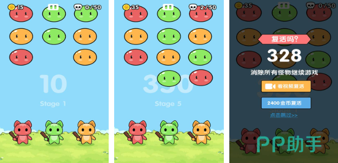 面向泛龄层用户的卡通风格消除射击融合产品。主角阵营由多种圆形轮廓小怪兽组成,操作简化至边缘点击即发射弹丸,无复杂瞄准或蓄力环节。背景采用分层手绘风场景,伴随清脆音效与粒子击中特效,强化正向反馈。关卡内置形态识别机制——特定怪物需匹配对应弹种方可高效清除,提升策略维度而不增加操作负担。