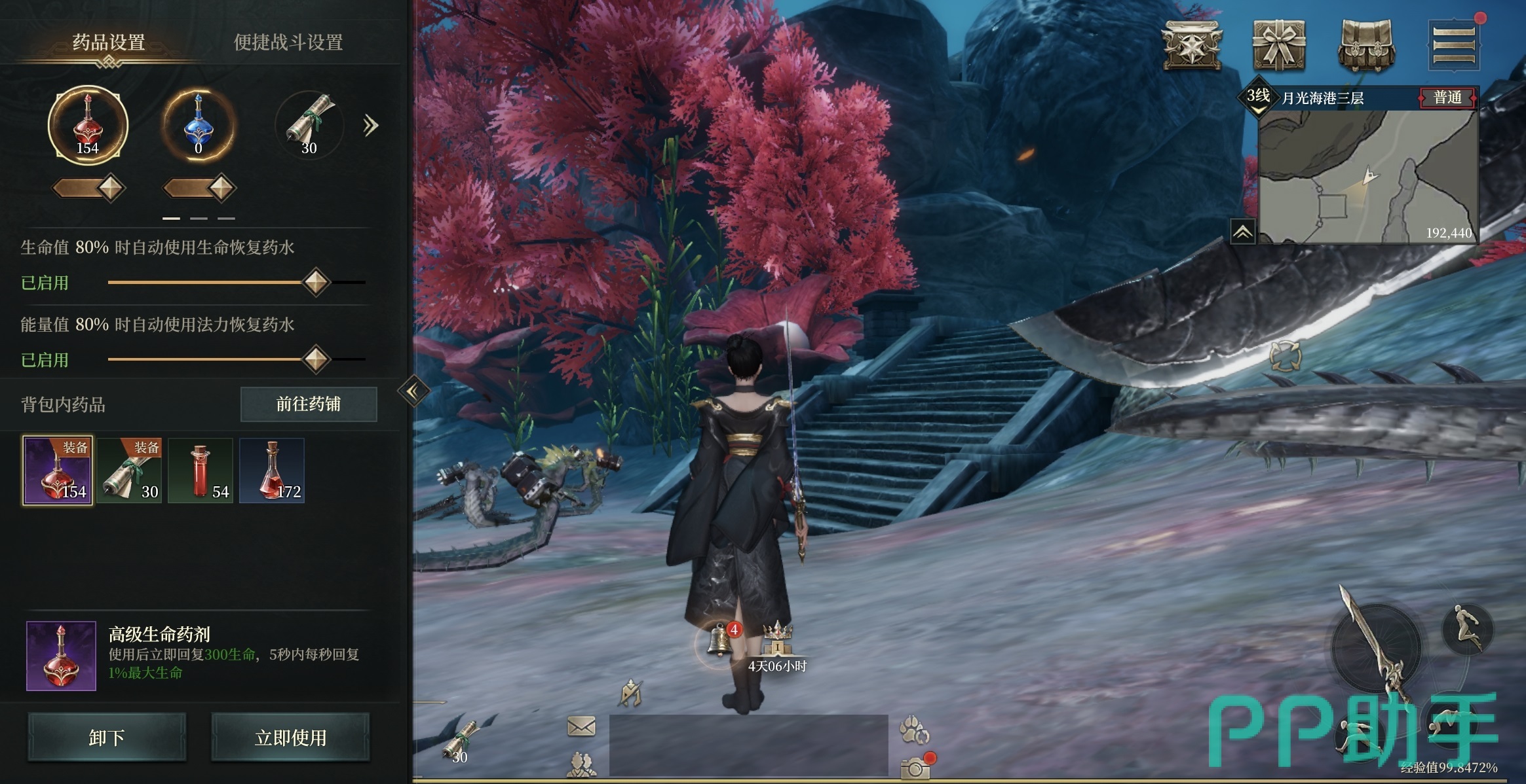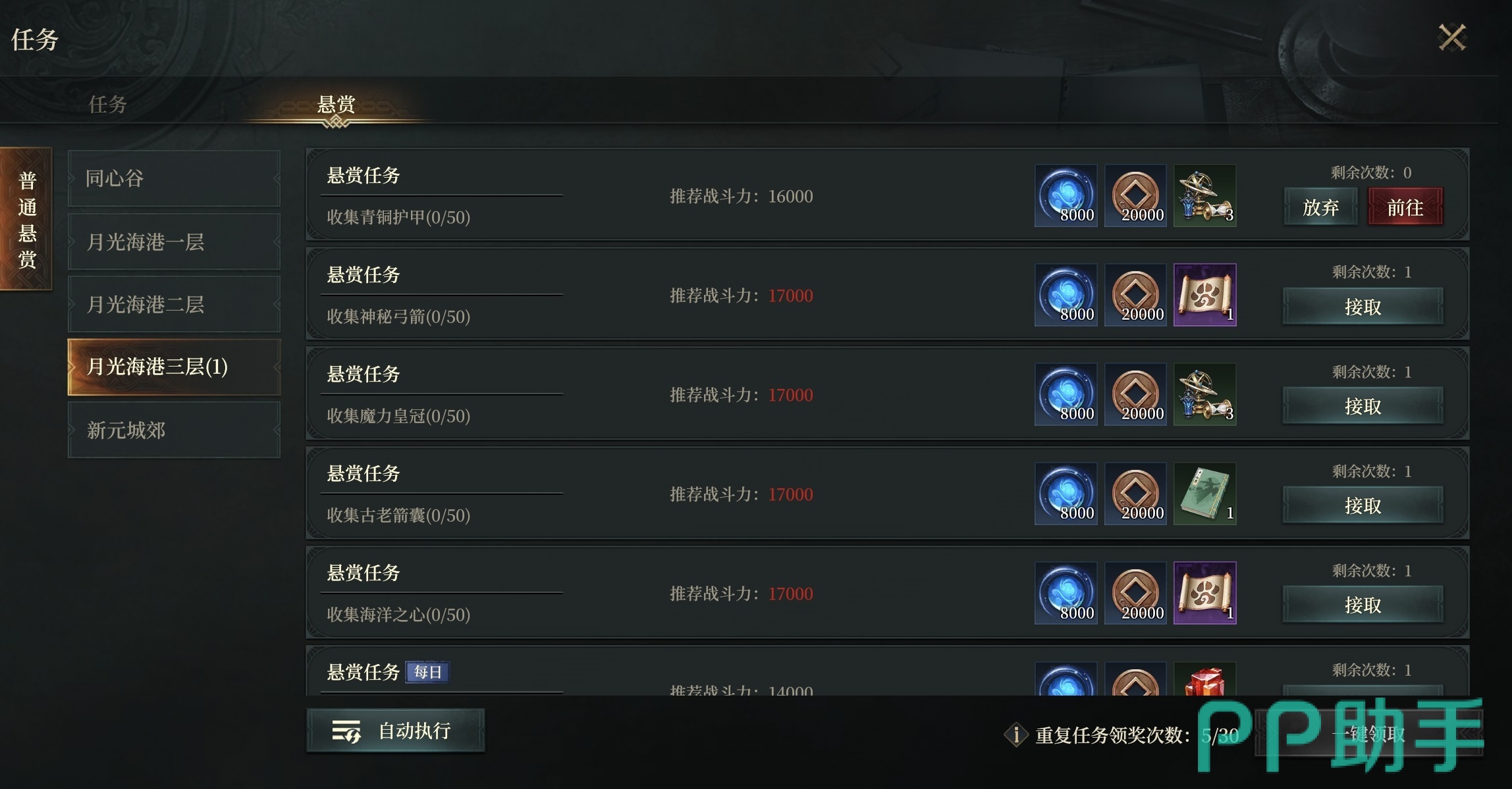 高效挂机并非简单开启自动战斗,而需前置完成策略性部署。首要步骤是进入【悬赏】系统——该界面按战力区间划分多档任务,建议优先领取与当前角色总战力数值最接近的一组任务,全部接取后启用“自动执行”功能。系统将依据地图坐标智能规划行进路线,由近及远依次清理目标怪物,在击杀基础奖励之外,每项悬赏均额外提供固定经验与铜钱,显著提升单位时间产出比。任务激活后,必须同步完成药品补给:因持续作战将消耗生命值与法力值,需提前在商店批量购置血药与蓝药,并在药品设置界面完成绑定。需特别注意蓝药消耗速率普遍高于血药,建议按1.5:1比例储备,避免因法力枯竭导致战斗中断,从而保障挂机流程稳定性。