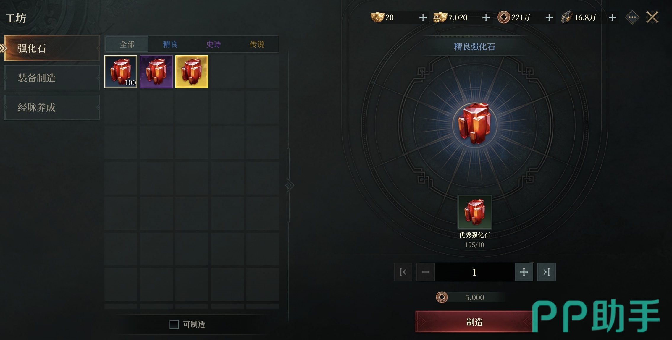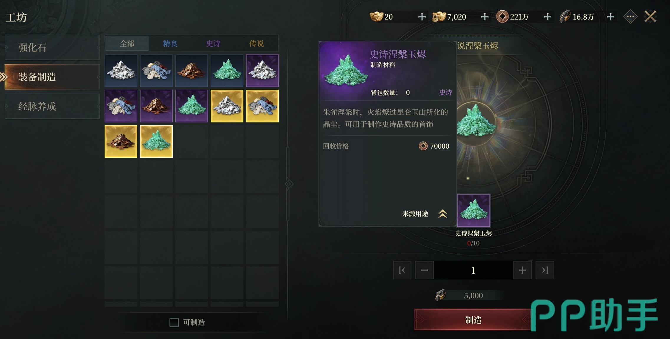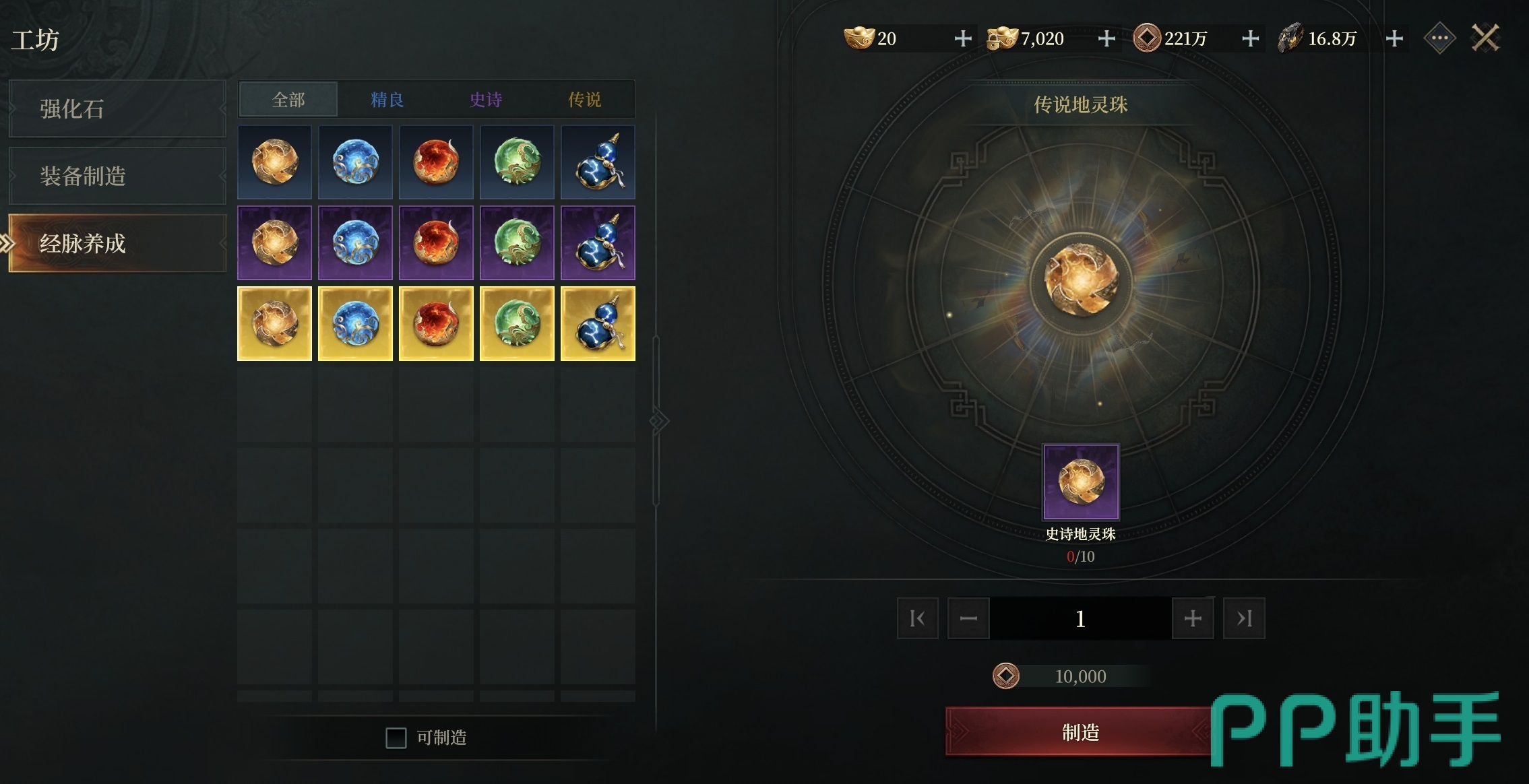 经脉养成模块则服务于角色内功体系的进阶需求。例如,精良地灵珠需消耗10颗优秀地灵珠合成,而史诗地灵珠则需100颗优秀地灵珠完成转化。这一设计显著降低了高阶经脉道具的获取门槛——即便战力尚不足以挑战高难度副本,玩家亦可通过大量刷取低阶资源,借助工坊实现稳步成长。该机制不仅提升了资源利用率,更拓展了多元化的养成节奏选择。