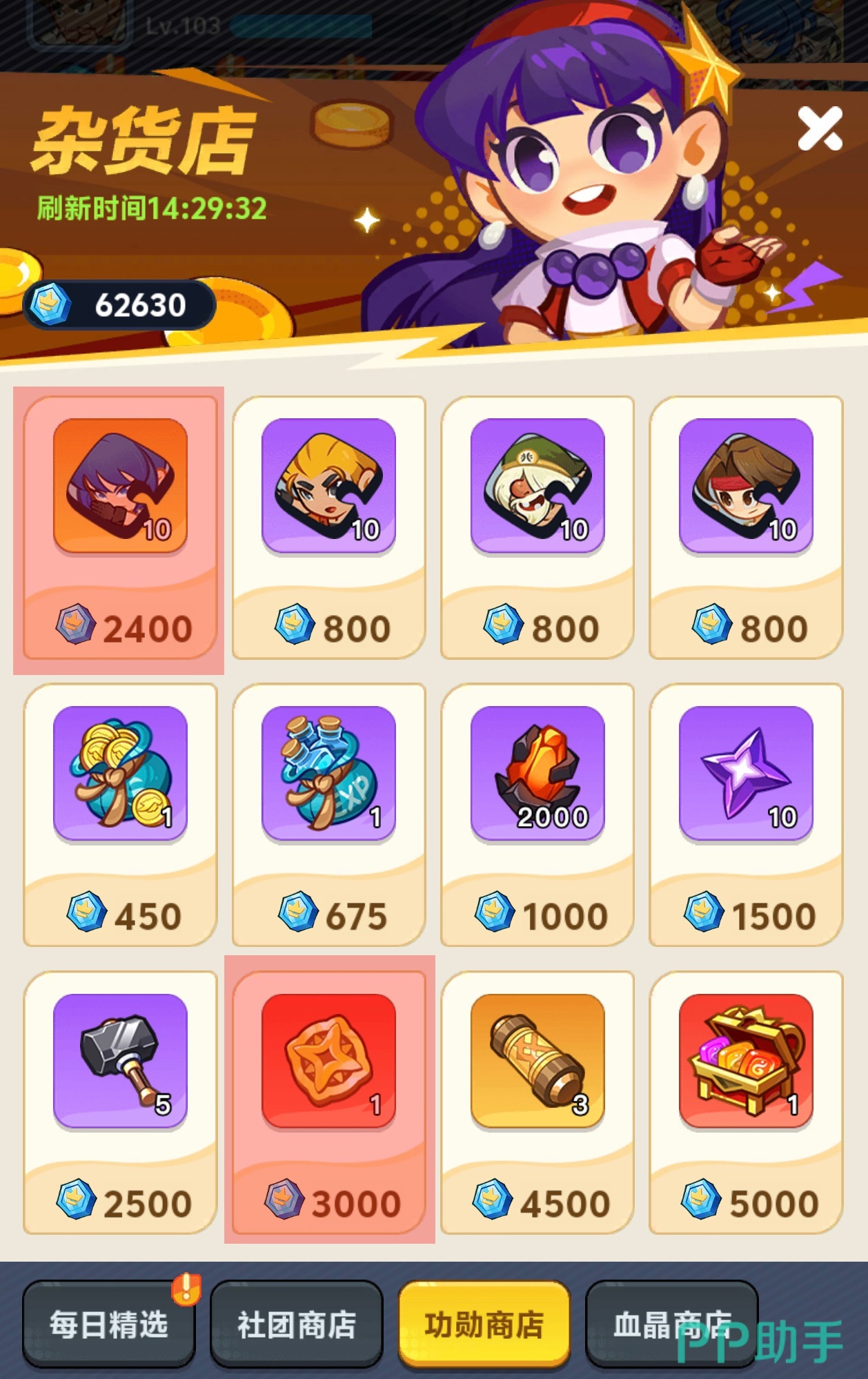 每日精选商店以限时性与高回报率见长,主要提供两类资源:免费领取礼包与钻石购入道具。其中四档免费礼包为每日必领内容,涵盖钻石、英雄碎片、经验药水及金币等基础成长物资,零成本获取,不容遗漏。钻石购买类商品每日轮换,常见品类包括进阶石外卖、指定英雄碎片、经验包、通用金币及邀请函。其中邀请函具备固定折扣机制,性价比突出;其余商品则建议结合自身阵容缺口判断——若刷出主力角色碎片,无论是否打折均应优先入手,该渠道是碎片补全的重要稳定来源。