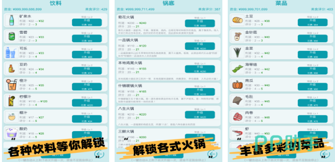 聚焦川渝火锅文化内核,提供毛肚、黄喉、鸭肠等数十种真实食材图鉴。玩家需平衡锅底辣度、蘸碟配方与涮煮时长,应对“微辣免蒜”“鸳鸯锅双汤底”等精细化需求。加入“夜市档口”“冬至围炉”等节气主题活动,增强经营叙事厚度。