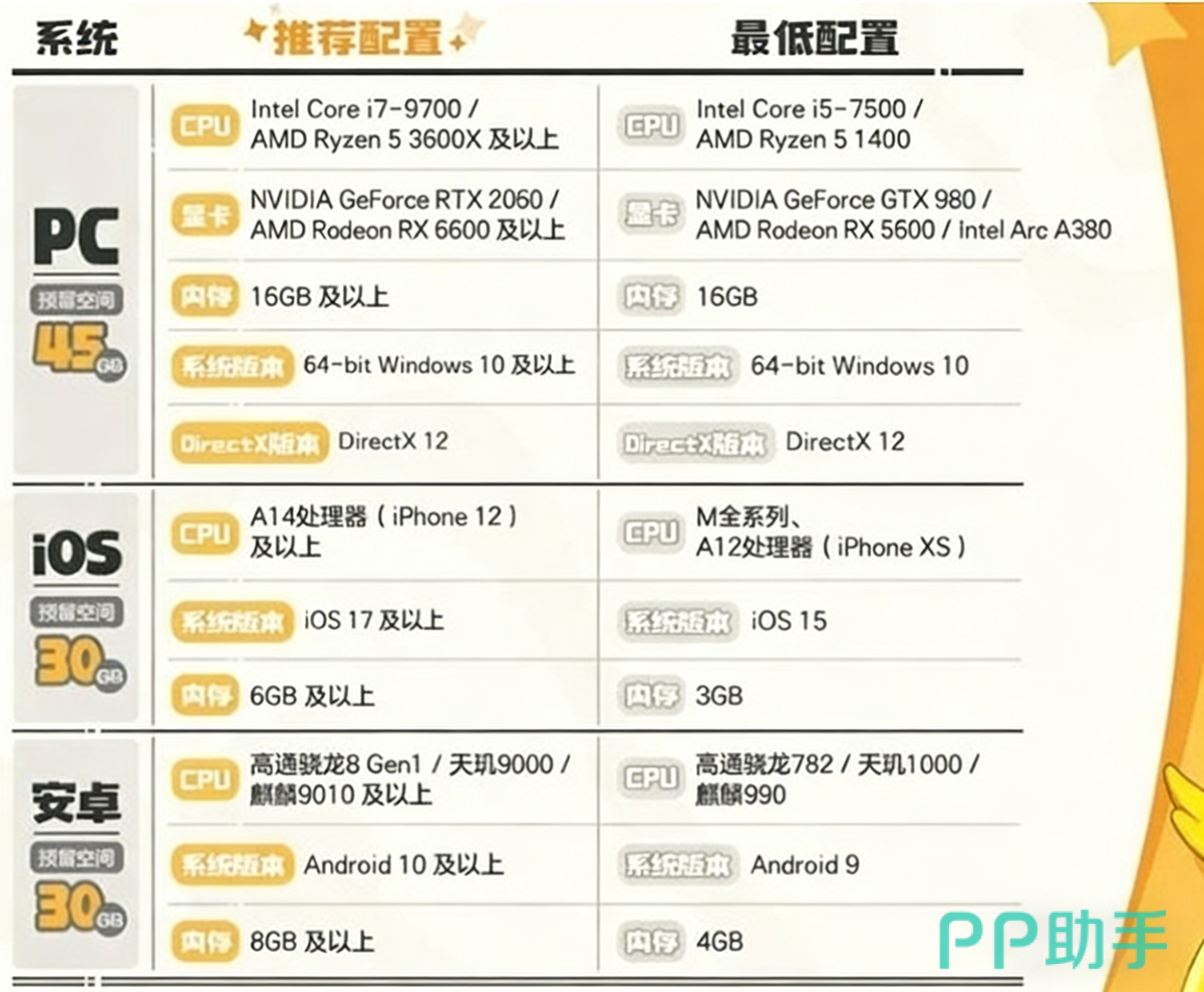 iOS设备用户可自iPhone 11起开始体验,但系统版本须升级至iOS 15或更高;推荐设备为iPhone 13 Pro及以上型号,系统建议更新至iOS 17.5。iPhone 8系列虽未达最低推荐标准,但在大幅降低画质设置、禁用全部视觉特效的前提下,仍具备基础运行可能性。所有iOS用户均需确保设备拥有不少于30GB的可用存储空间,建议提前清理相册、应用缓存等冗余内容。
