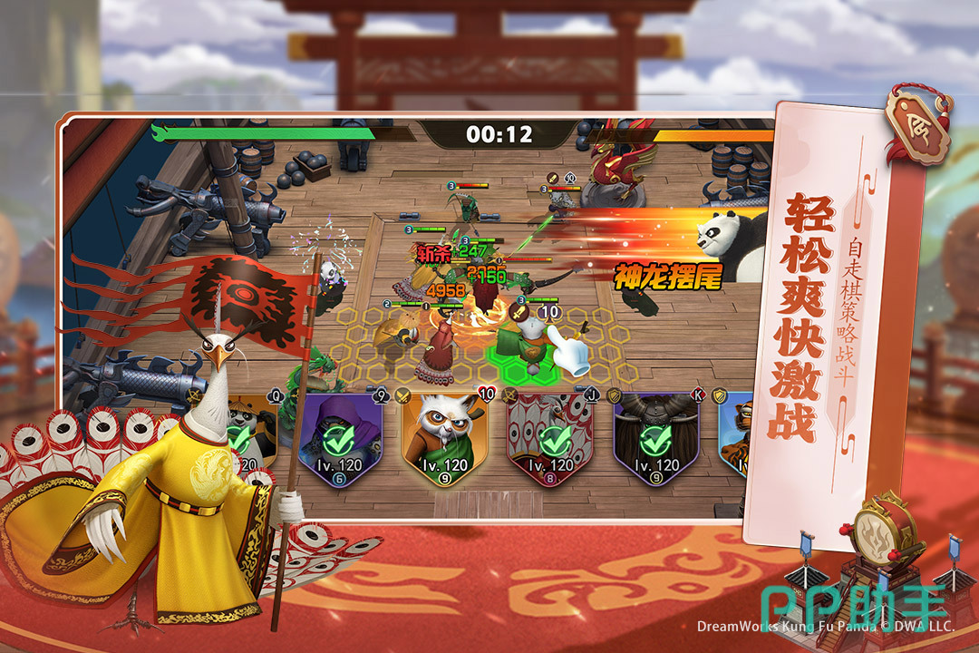 本作采用双核驱动玩法架构:一边是沉浸式模拟经营系统,玩家需在青翠山谷中规划布局,建造阿宝面馆、药铺、武馆等标志性建筑,参与种田、采矿、装饰升级等深度互动;另一边则是策略性自走棋战斗体系,依托《功夫熊猫》世界观展开卡牌对战。游戏目前已实装超50位可收集侠客角色,每位均配备独立技能树、专属武器及成长路径,配合独创的“机械兽工坊”系统,将建造产出与战力养成紧密串联。