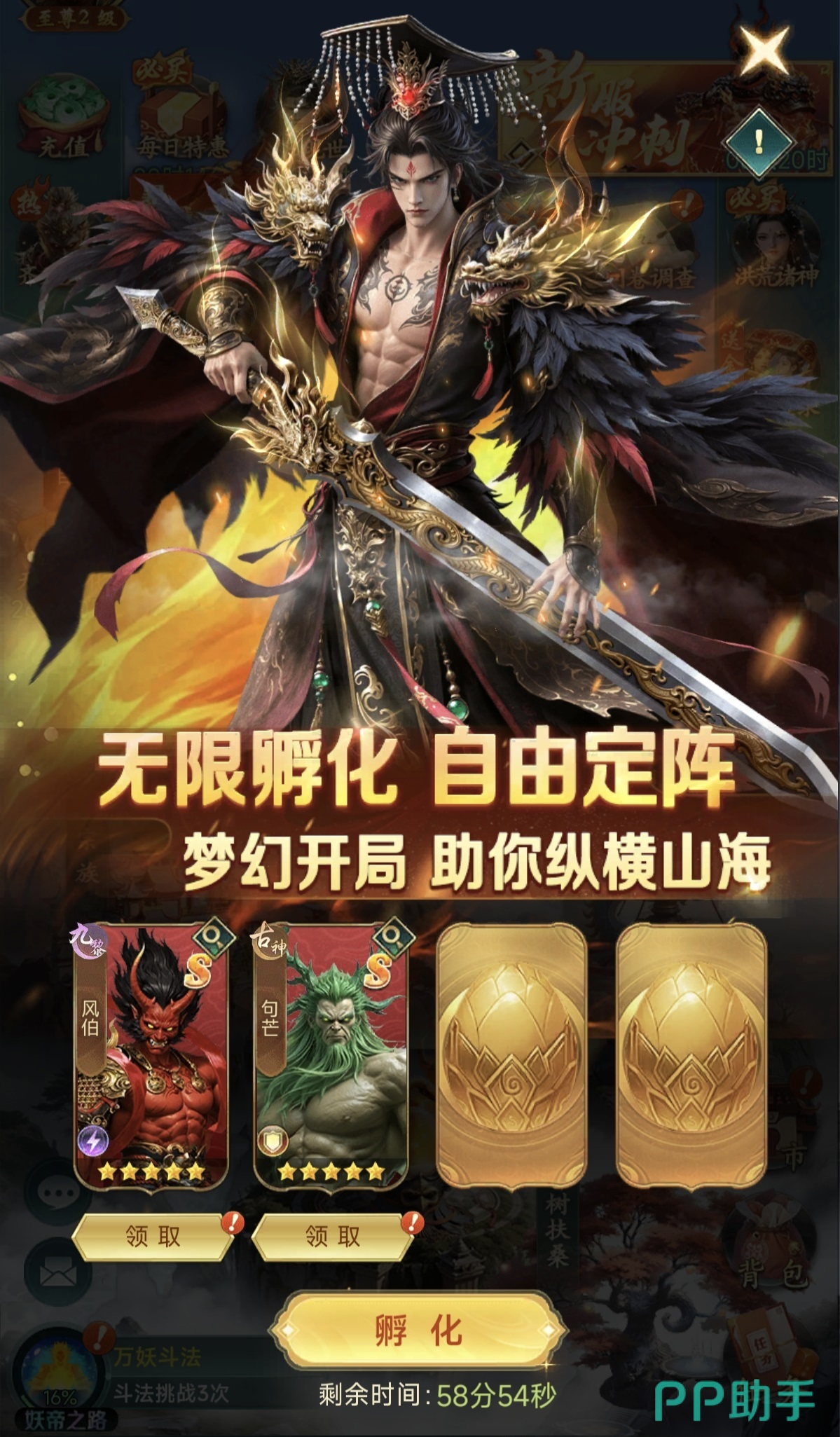 孵化所需道具为“异兽蛋”,可通过多种常规途径稳定获取:开服首周登录奖励、阶段性充值返利、战力排行榜冲刺、主线任务推进等均会发放大量异兽蛋。前期资源充足,快速组建基础战力阵容毫无压力。此外,游戏上线即开启“无限孵化”限时活动——玩家可不限次数参与孵化,所有结果暂存待选,自由择优领取,是新手阶段获取高资质神兽的重要窗口期。