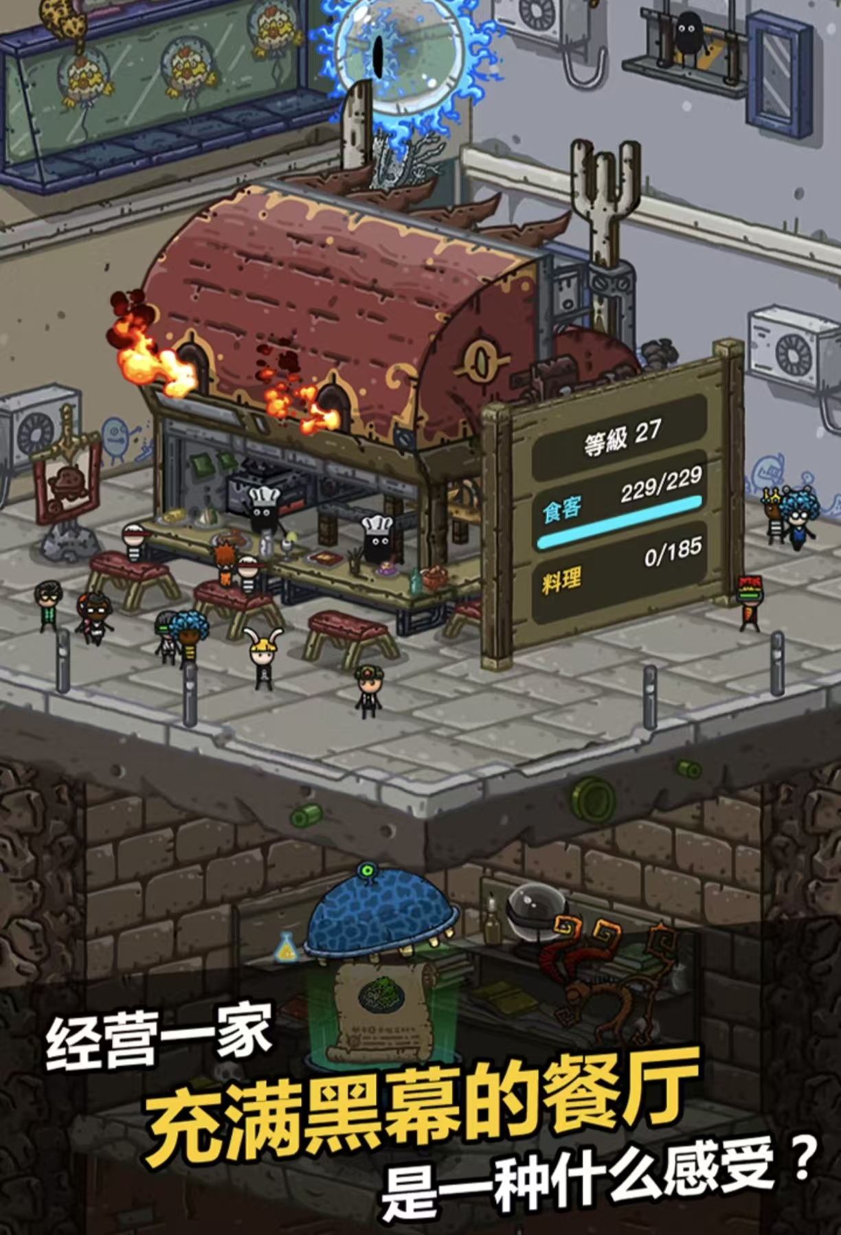 模拟经营类暗黑题材创新之作,玩家经营面向异种生物的禁忌餐厅。食材系统包含活体菌毯、眼球凝胶、骸骨粉等非常规原料,菜谱存在隐性合成逻辑——特定组合触发隐藏料理与顾客特殊反应。场景含表层市集与深层地窟双层结构,地窟区域需应对随机生成陷阱与守卫怪物,产出稀有厨具与食谱残卷。