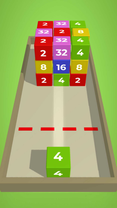 本作采用三档可选宫格布局(4×4、5×5、6×6),适配不同熟练度玩家。方块融合规则引入色彩识别机制——如红色与绿色方块需匹配同色方可合并,强化视觉辨识与操作精度。每关限定道具使用次数,仅当目标数值持续攀升、局面趋于紧张时,才可启用转换类道具辅助关键决策。