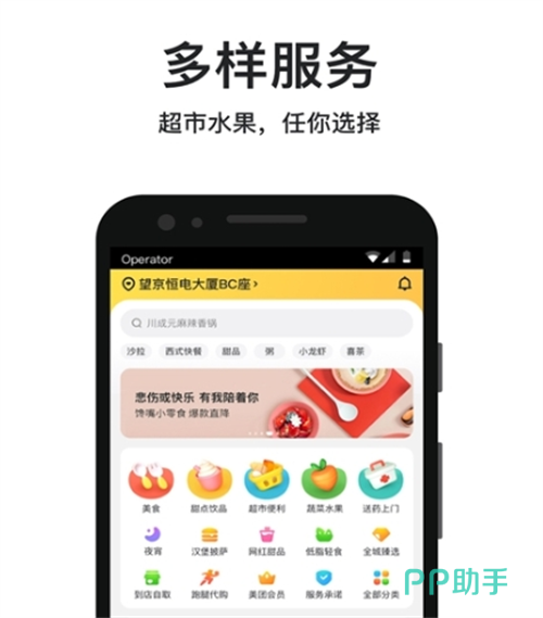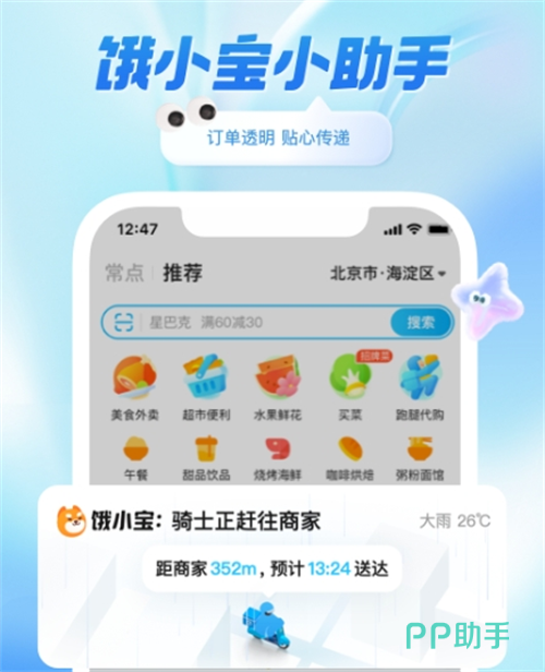 聚焦餐饮外卖逐步拓展为覆盖全场景的即时生活服务平台,平台核心服务不仅涵盖美食、水果、蔬菜、超市商品、鲜花、蛋糕等日常所需,还依托小象超市提供生鲜百货一站式购物服务,支持快至30分钟内送达,同时提供全城跑腿配送,满足紧急物品传递需求。其核心优势在于强大的履约能力,拥有超百万骑手的自建运力体系,结合智能调度算法,配送准时率达95%以上。